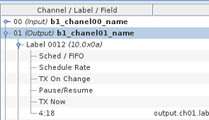 LabelUnique identifier for a message on this channel. Usually specified as an octal number. To enter the label value as an octal number, prefix the number with 0 . To enter as a hexadecimal value, prefix the number with 0x Enable SDIWhen checked, additional mapping nodes are added for each allowable value of the 2 bit SDI field. Sched Rate (ms)Rate at which messages are sent (output channels only). FIFO Tx:Specifies that messages are sent via FIFO instead of scheduled rate (output channels only). Tx on changeSpecifies that a message is sent only when the value changes (FIFO Tx only). TxOrderThe priority to send this label when multiple labels are output on the same channel (FIFO Tx only) |